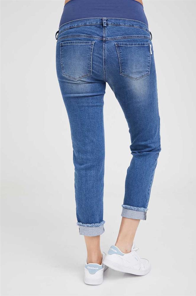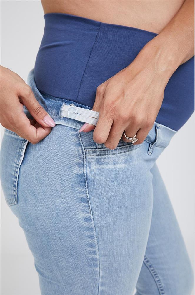 לג'ינסים אלו יש רצועת לייקרה שנמתחת על הבטן - הג'ינס עצמו נמוך ובתוך החגורה תמצאי פטנט לולאות גומי שיעזור לך לשמור על התאמה מושלמת לרוחב המותן – חשוב להתאים את מידות הגומי במהלך ההיריון. בא לך ללבוש ג'ינס שנראים כמו מכנסי עבודה ישנים? אם זה מצב הרוח היומי לכי על ג'ינס קרעים.