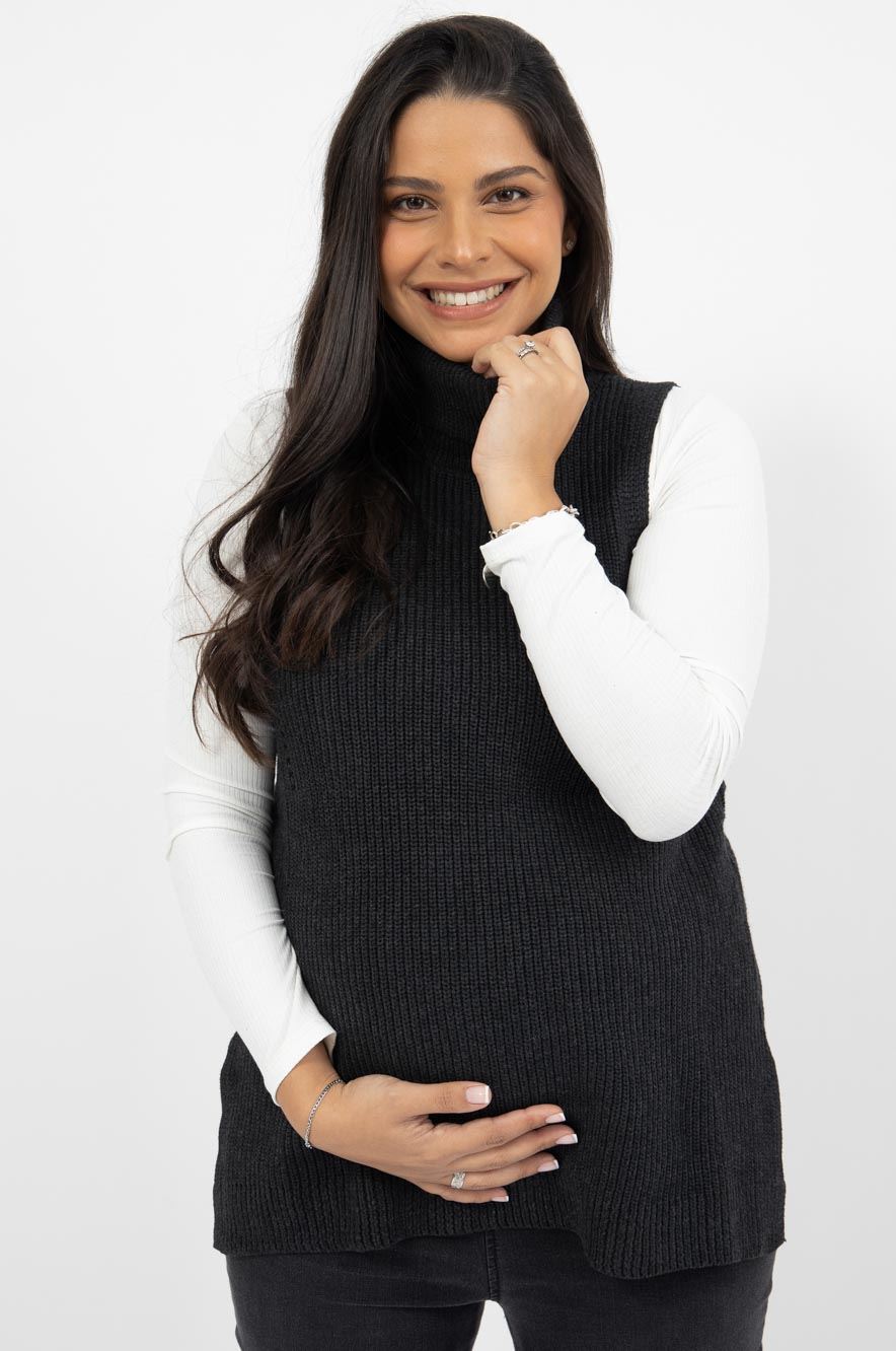 אפודת סריג להריון צווארון גולף וללא שרוולים. להישאר אופנתית ומעודכנת גם בהריון, אבל ממש לא רק... הפריט שימשיך איתך גם לחורף הבא.