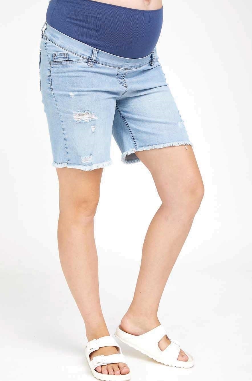 ג'ינס קצר להריון, הפריט שלא תרצי להוריד ממך! שילוב של כותנה דקיקה ונעימה, גזרה משוחררת ואורך מדוייק שכייף ללבוש לאורך כל היום. רצועת הבד הנמתחת מקדימה מאפשרת מתיחה מקסימלית לבטן, בשילוב קרעים עדינים וסיומת פרנזים במראה פרום.