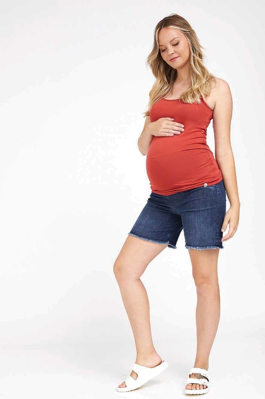 ג'ינס קצר להריון, הפריט שלא תרצי להוריד ממך! שילוב של כותנה דקיקה ונעימה, גזרה משוחררת ואורך מדוייק שכייף ללבוש לאורך כל היום. רצועת הבד הנמתחת מקדימה מאפשרת מתיחה מקסימלית לבטן, בשילוב קרעים עדינים וסיומת פרנזים במראה פרום.