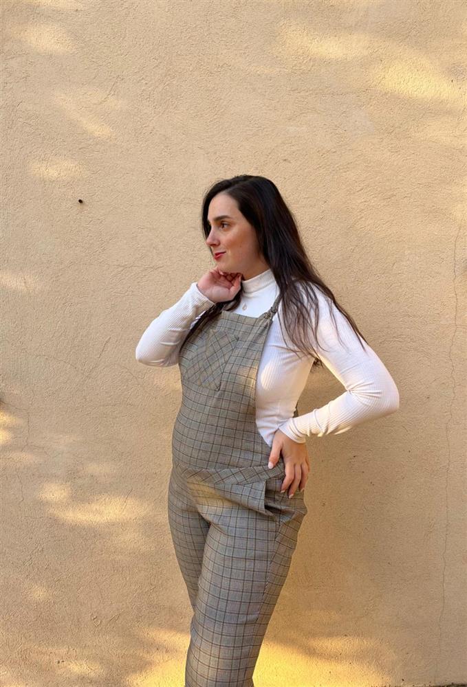 שבוע 33 - לובשת אוברול מדיסון משבצות בלוק קיצי וספורטיבי.