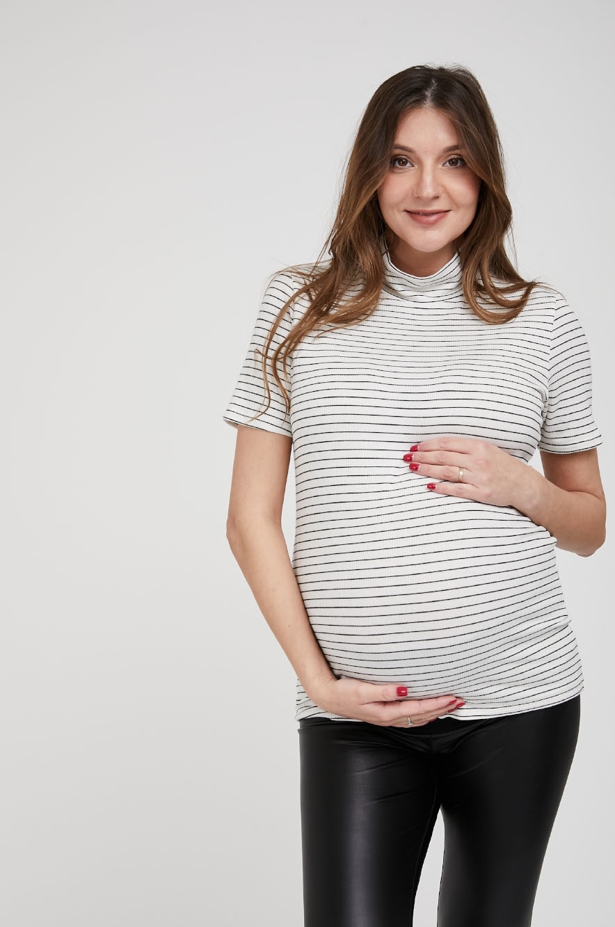 חולצת גולף להריון ש.קצר שמנת פס שחור