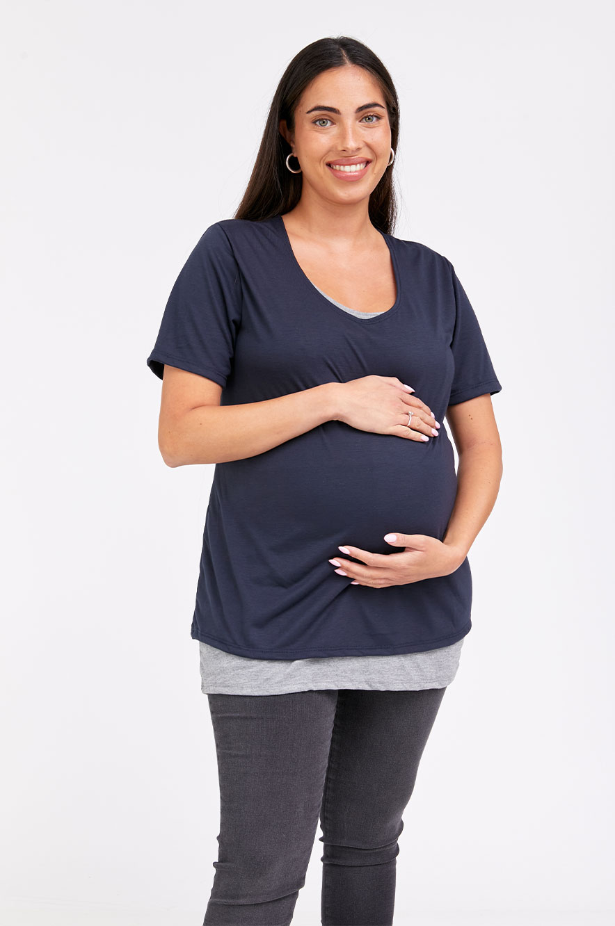 חולצת הנקה חצי שרוול נייבי אפור