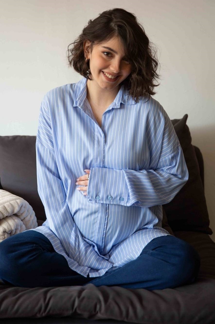חולצת הריון אוברסייז פסים תכלת