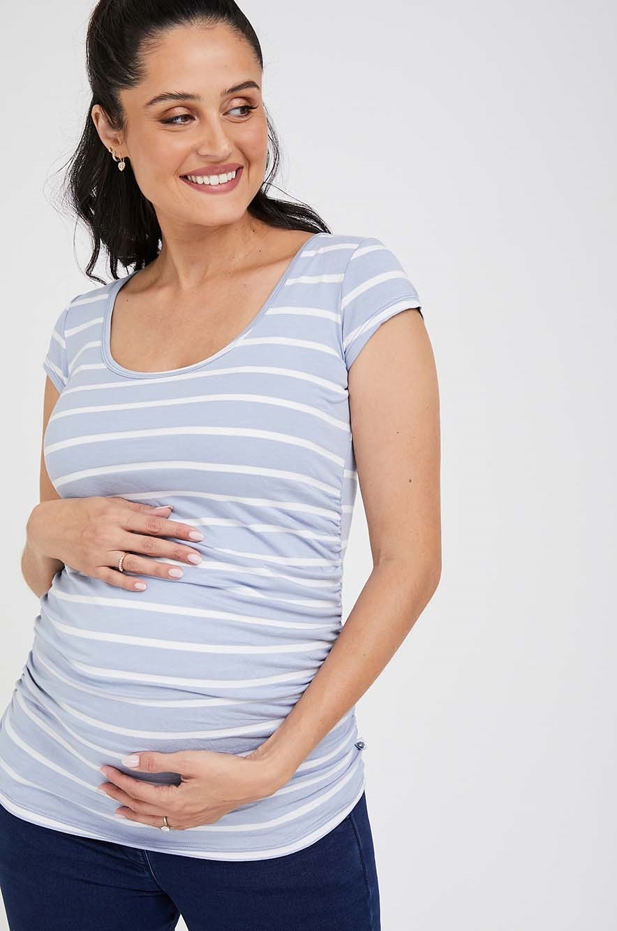 חולצת הריון Baby Grow ש.קצר פסים תכלת לבן