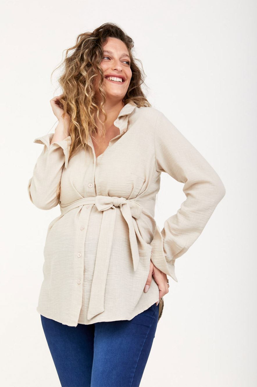 חולצה הריון מכופתרת למראה שיקי, מחוייט ונשי. עם חגורה לקשירה קדימה או חורה. מושלמת בשילוב עם מכנס או חצאית.