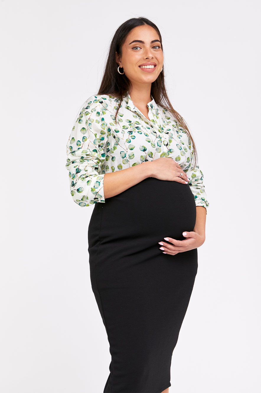 חולצת הריון מימי ש.ארוך שמנת מודפס