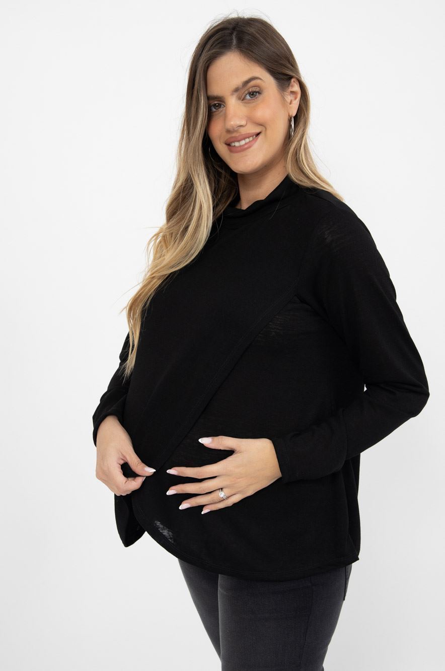 חולצת מעטפת להריון בגזרת A LINE מבד סריג קליל באריגת ריב בשילוב צווארון גולף קצר ומשוחרר. החולצה שתלווה אותך לאורך ההריון ועד תום תקופת ההנקה.