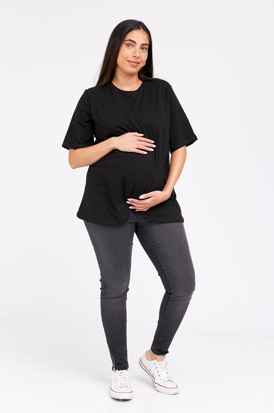 חולצת מעטפת להריון מבד קליל ונעים בשילוב צווארון עגול. החולצה שתלווה אותך לאורך ההריון ועד תום תקופת ההנקה.