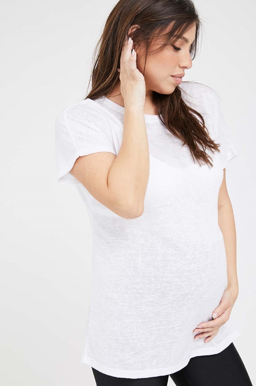 חולצת T קלילה להריון מבד דקיק נעים ורך עם מחשוף עגול ושרוול קצר, ללוק מרענן ללא מאמץ. כל מה שתרצי ללבוש בקיץ הקרוב.