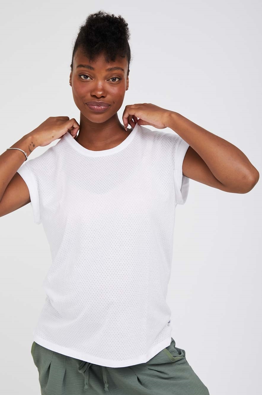 חולצת T קלילה להריון מבד מחורר עם מחשוף עגול ושרוול מקופל וכפתור, למראה STREET WEAR מהמם!