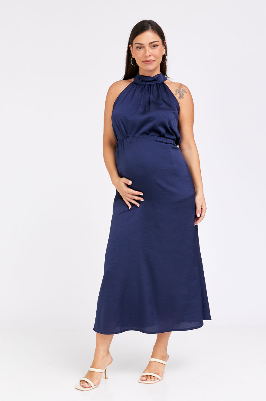 חצאית הריון דמוי סאטן בגזרה גבוהה המונחת מעל הבטן עם גומי בגב וגומי מתכוונן בחלק הקדמי להתאמה מושלמת לבטן הגדלה.