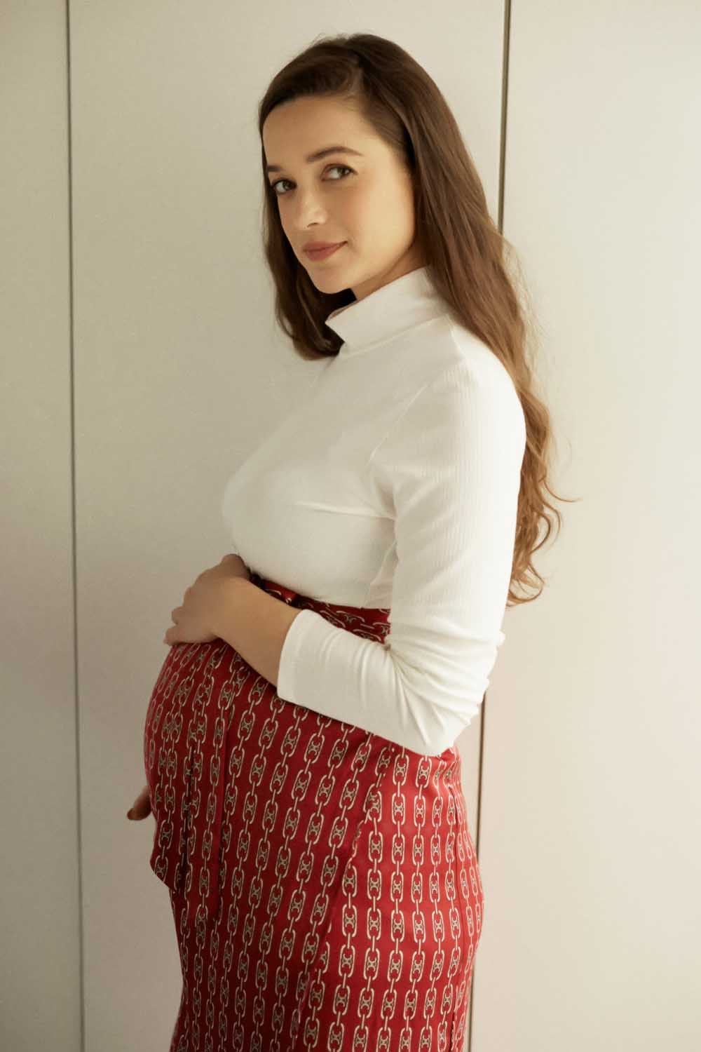 פרטי הדוגמנית:גובה - 1.61שבוע הריון - 26מידה - Sאורך החצאית - 74 ס"מ