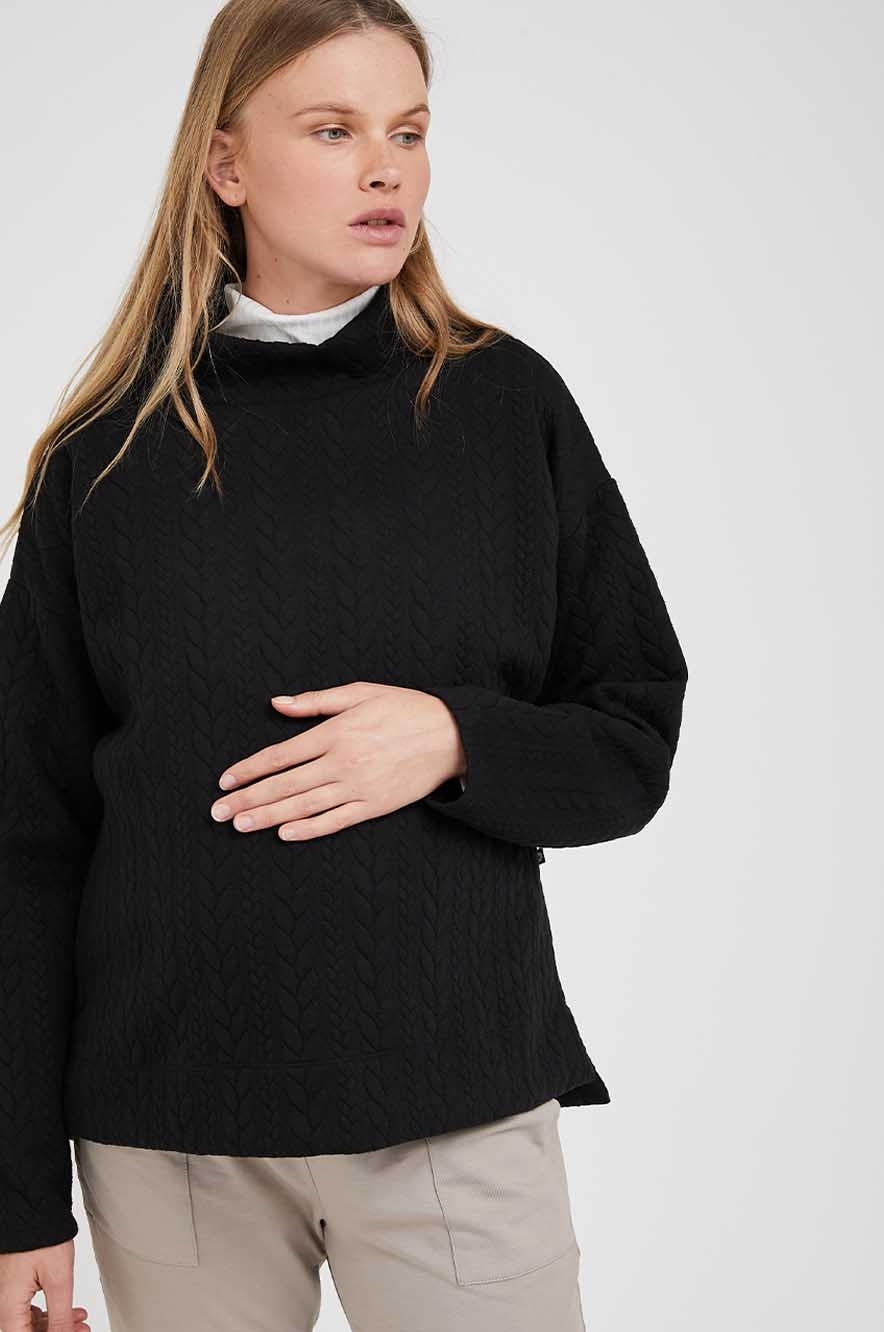 סווטשירט להריון בדוגמת צמות סופר נוח וקז'ואל, הטופ שאת חייבת לעצמך בחורף הקרוב. חיתוכים בצורת אוברסייז עם צווארון גבוה שמתאים לכל צורות הגוף ולכל שלבי ההריון, וגם לאחריו.