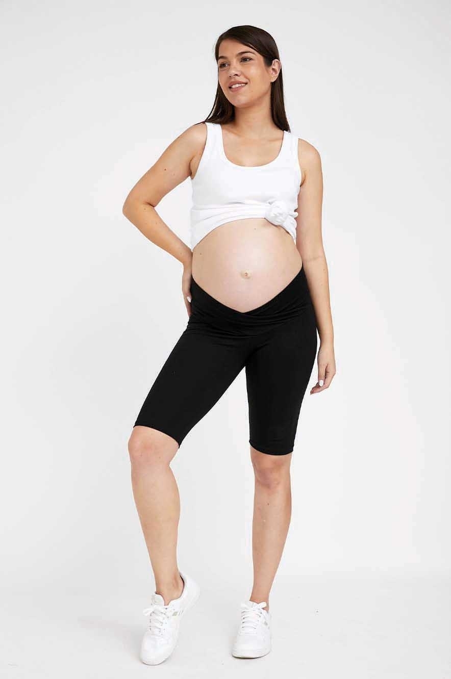 טייץ קצר להריון עם חגורת בטן בגזרת מעטפת.