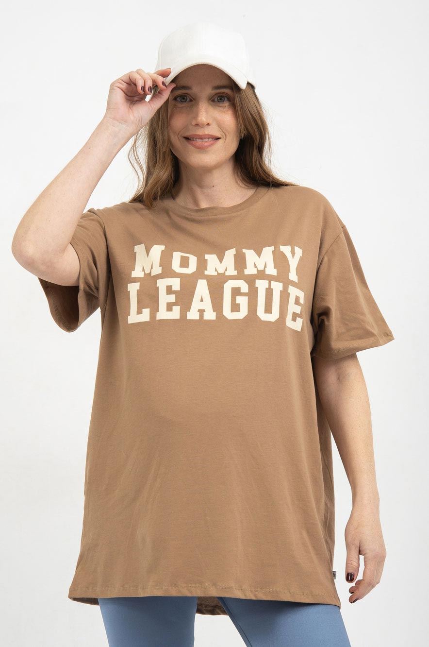 טי שירט הריון MOMMY LEAGUE מוקה שמנת