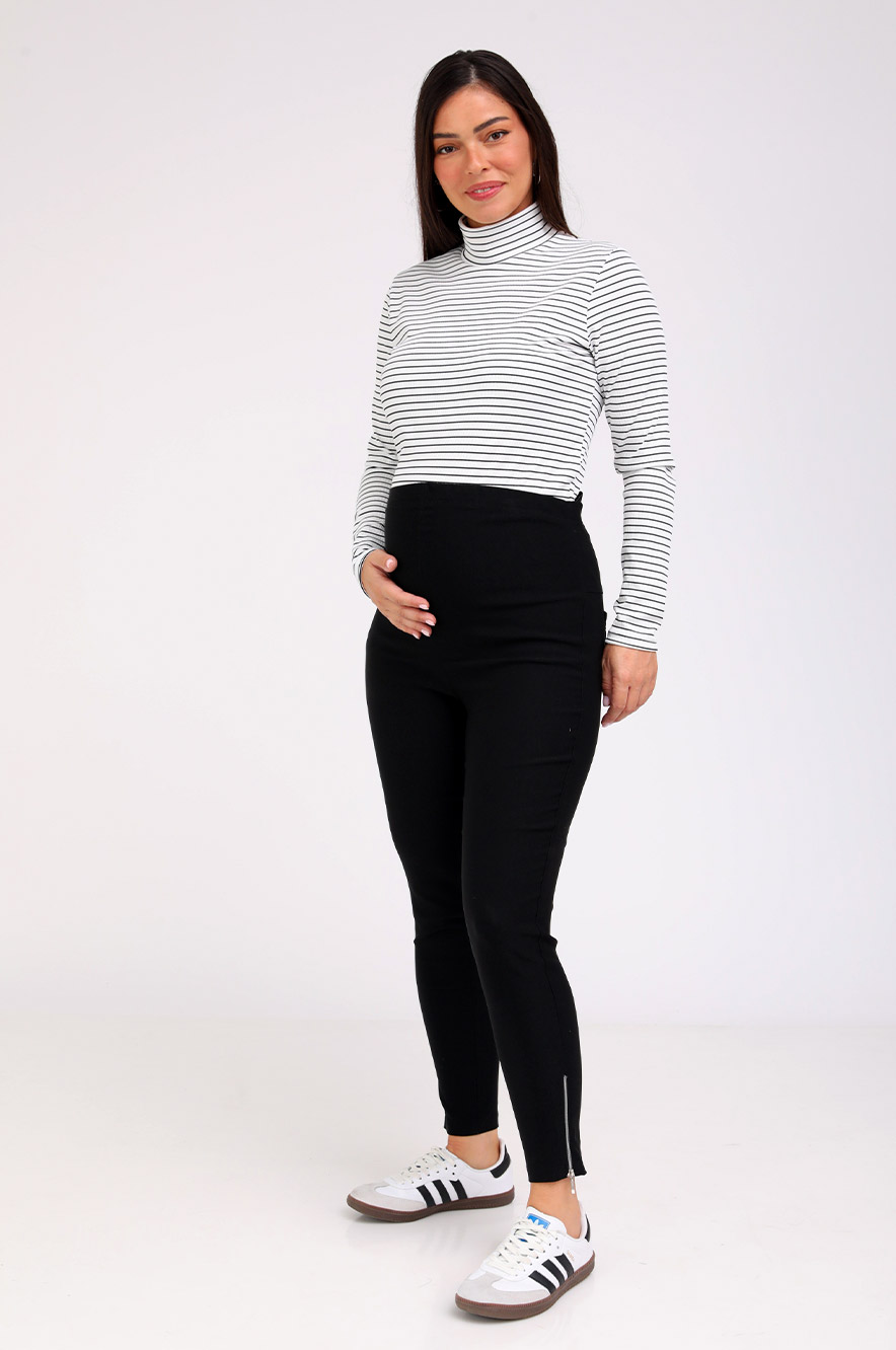 ג'ינס הריון עם פטנט הכפתורים והגומי (בחלק הפנימי) להתאמת היקף המותן לנוחות מירבית עבורך בשילוב גומי מאחור ורוכסנים באזור הקרסול.