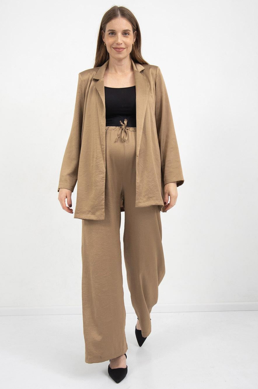 מכנסי דמוי סאטן נעימים בגזרה משוחררת ומחמיאה, עם חגורת גומי ושרוך קשירה להתאמה מושלמת לכל שלבי ההריון, בשילוב כיסים צידיים לנוחות מירבית.