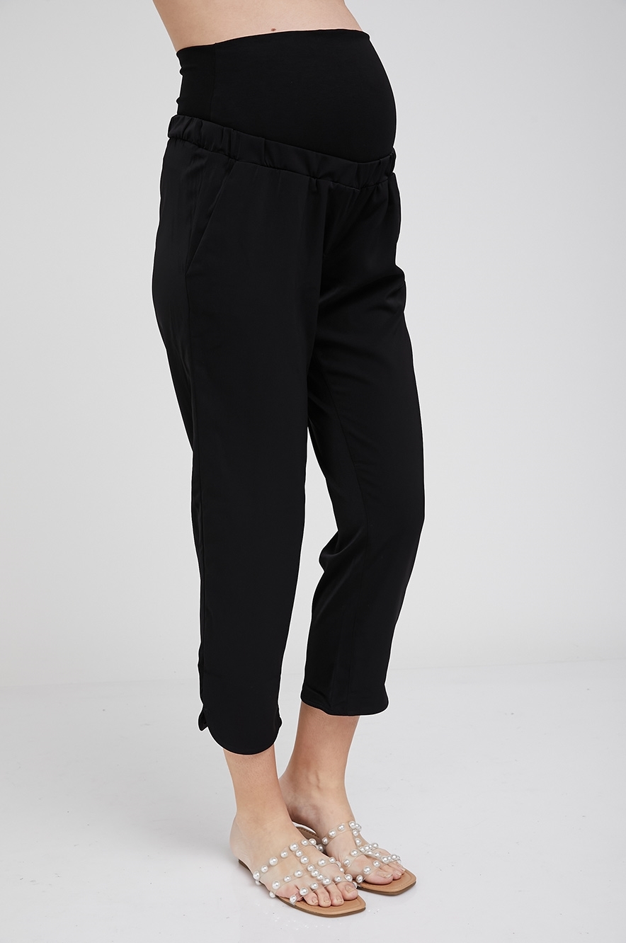 מכנסי הריון באורך 7/8 עם סיומת מעוגלת, בגזרה נינוחה ומשוחררת, מבד קליל עם רצועת בטן נעימה ללא כפתור בשילוב כיסים לנוחות מירבית.