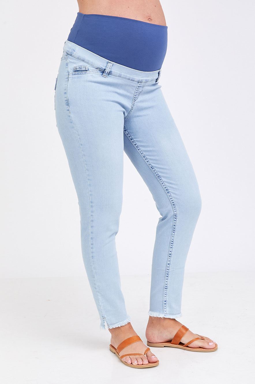 הסקיני שאת חייבת בארון ההריון שלך! סקיני מחטב ללא כפתור למראה נקי ותחושה משוחררת, בגוון USED מושלם באורך קרסול עם פרימות עדינות בסיומת. הג'ינס משולב עם רצועת בד אלסטית למקסימום נוחות ותמיכה עדינה בגב בשילוב פטנט הכפתורים וגומי להתאמת היקף המותן לנוחות מירבית עבורך.