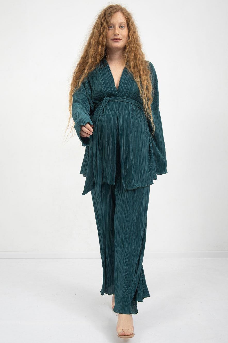 קימונו מבד פליסה מעט מבריק להריון. בתוספת חגורת קשירה לנוחות מושלמת ושרוולים רחבים באורך שלושה רבעים מעניקים טאץ' מלא בסטייל ושיק. יכול להתאים מעל שמלה או חצאית וגם מעל ג'ינס או מכנסי פליסה.