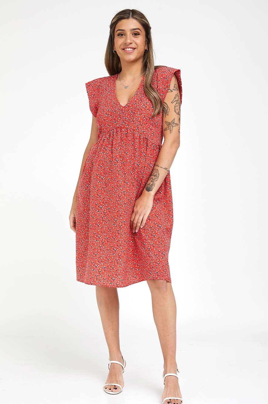 שמלה קלילה להריון עם מחשוף V, חיתוך וכיווצים מתחת לחזה בשילוב רצועת קשירה בגב, יוצרים גזרה סופר מחמיאה ונוחה. השמלה שתרצי לגור בה כל הקיץ!