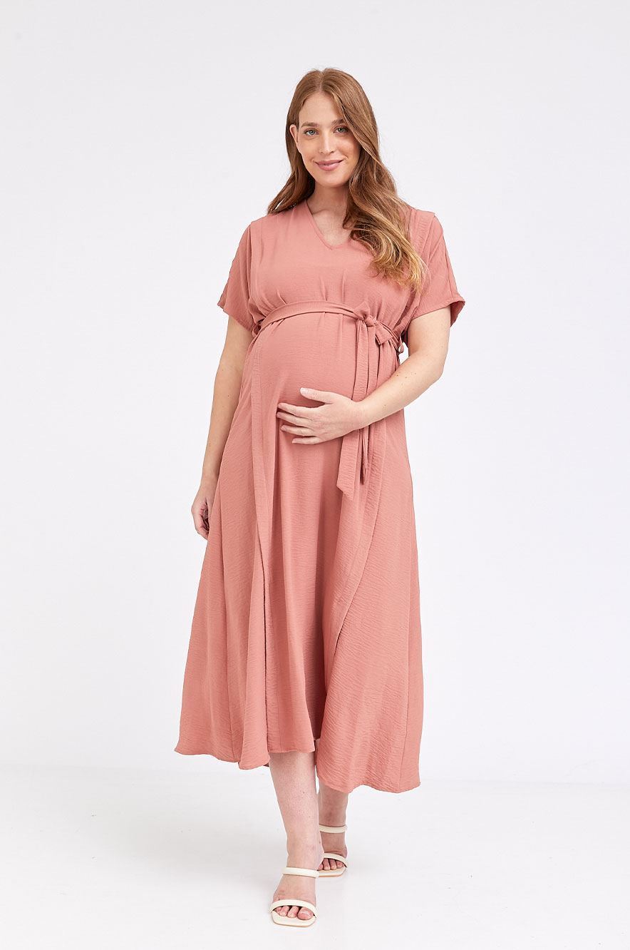 שמלת קיץ בסטייל מושלם ונשי עשויה בד אוורירי שתתאים לכל אירוע בתקופת ההריון והרבה לאחריה.