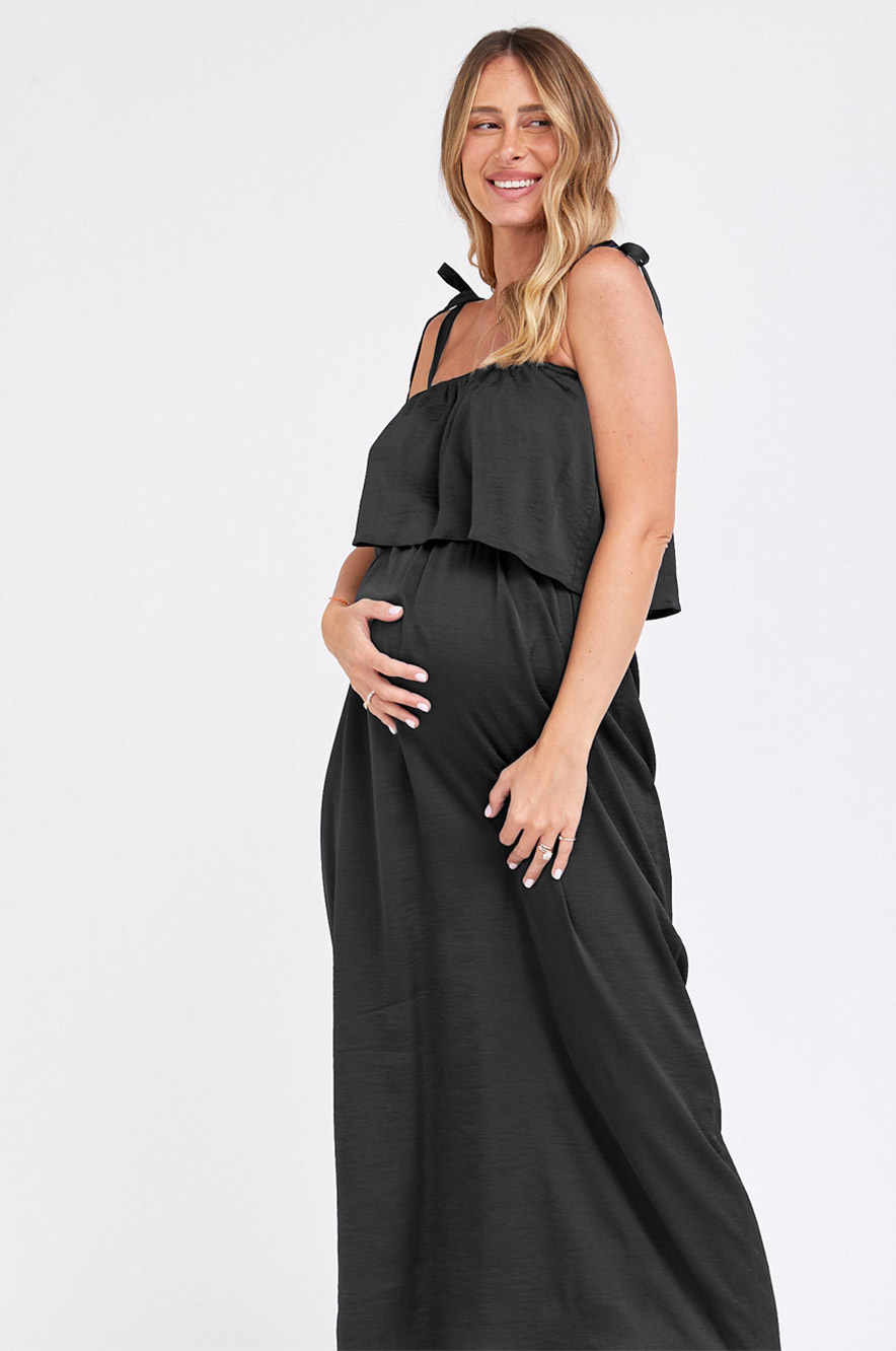 שמלת מקסי להנקה עם כתפיות נקשרות בגזרה ישרה ומשוחררת עם פטנט הנקה דיסקרטי בחלק העליון באזור החזה. השמלה שסוגרת את הפינה גם במהלך ההיריון וגם לאחריו!