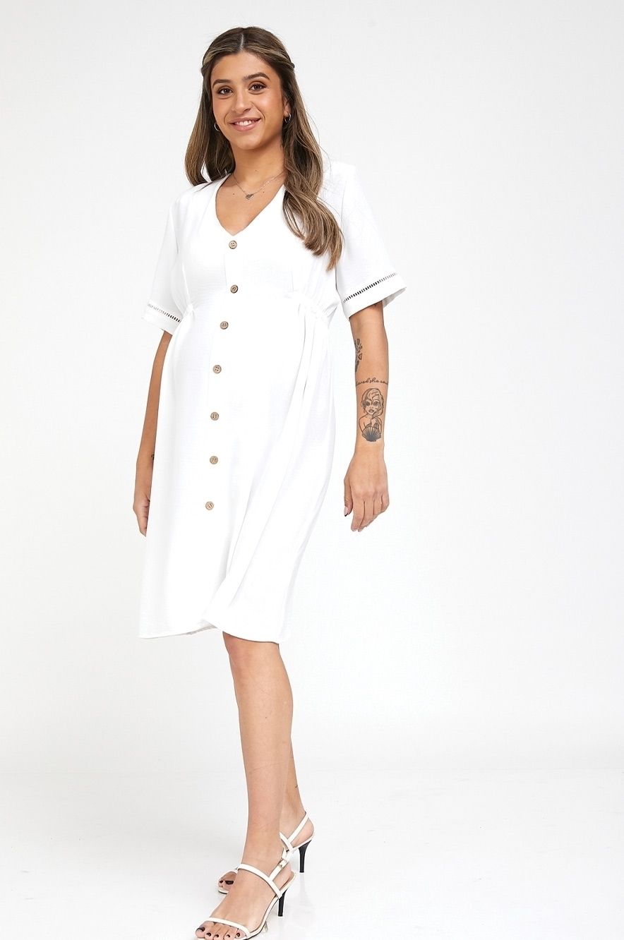 שמלת ההריון המושלמת לקיץ הקרוב! גזרה סופר מחמיאה ונשית מבד נעים וקליל, מחשוף V, כיווצים מתחת לחזה ושילוב כפתורי דמה לאורך השמלה- שמלה מאסט למלתחה שלך.