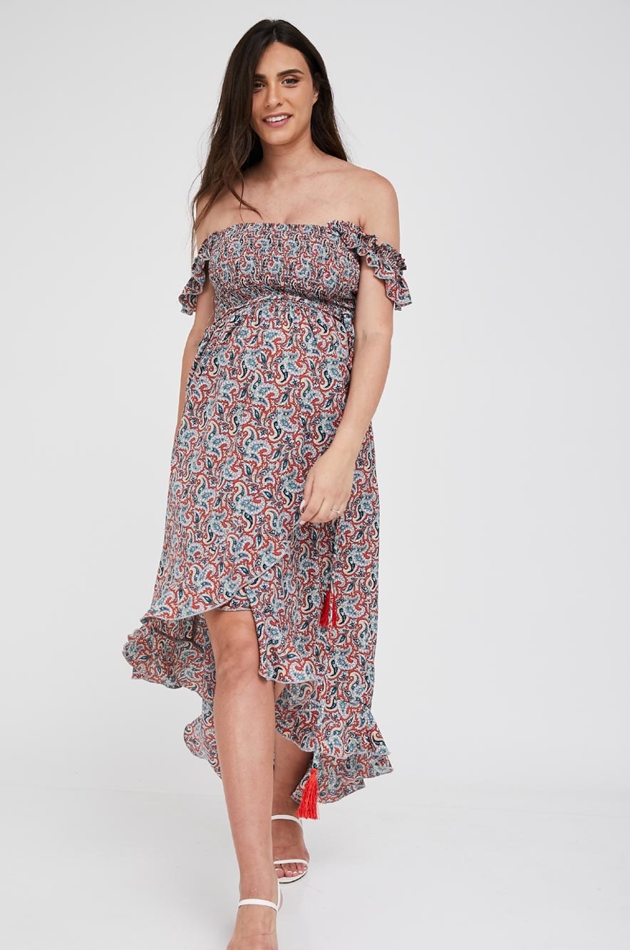 שמלת סטרפלס להריון אלינה הדפס אדום